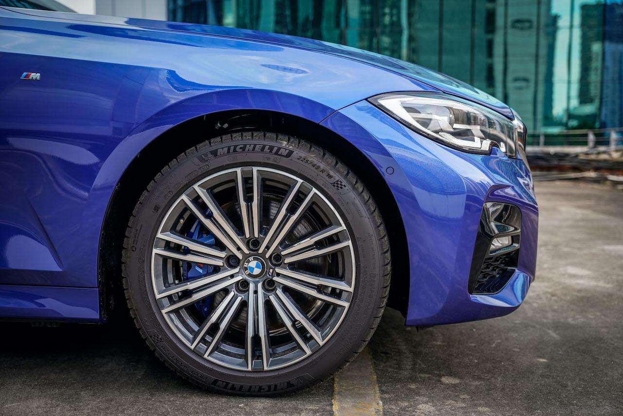 The new BMW 330e M Sport comes with 18-inch M light alloy wheels in double-spoke style 790 M Bicolour with mixed tyres. It is available in the following colours: