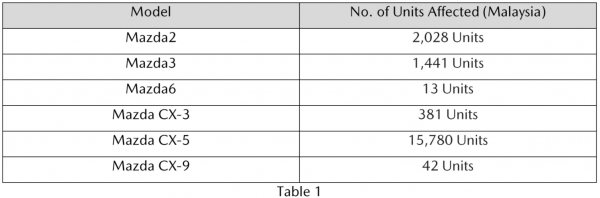 Bermaz Motor has issued a recall that affects a total of 19,685 units of Mazda vehicles sold in Malaysia.
