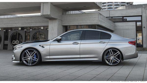 A new carbon bonnet with Venturi with air opening were installed together with a new set of fenders with air outlets. The new hood improves the ventilation of the engine compartment and also sharpens the look of the M5. In-house forged wheels in the dimensions 9×21 and 10.5×21 inches with 285/30 and 295/30 tires reduce the unsprung mass and are also very sexy looking. A fully adjustable coil over kit which allows lowering by up to 30 millimeters guarantees perfect traction.