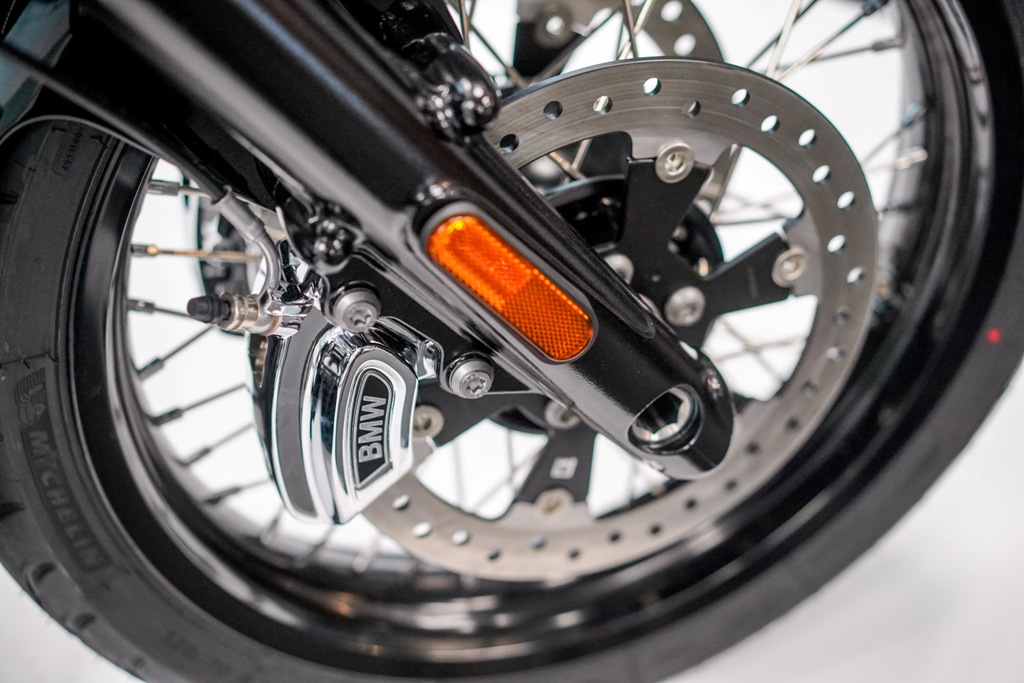 A 300mm twin disk brake with four-piston fixed callipers in front is also standard to the All-New BMW R 18, with single disk brakes in the rear. The BMW Motorrad Integral Anti-Lock Braking System (partially integral) is also available to prevent wheel lock in hard braking situations. The new cruiser is also equipped with the Automatic Stability Control (ASC) to ensure a high level of riding safety, and features three riding modes: Rock, Roll and Rain. Additionally, the All-New BMW R 18 is equipped with engine drag torque control (MSR) as standard.