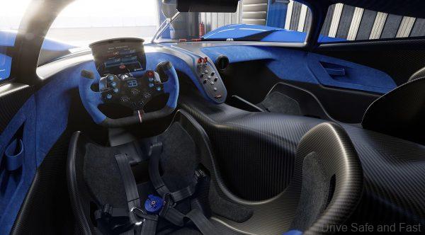 As with other Bugatti vehicles, the Bugatti design team also makes use of a colour split in the Bolide. Compared with other models, the share of visible carbon parts is increased by up to 60 percent. Only around 40 percent of the surfaces are painted – in a re-interpretation of the historic French Racing Blue.