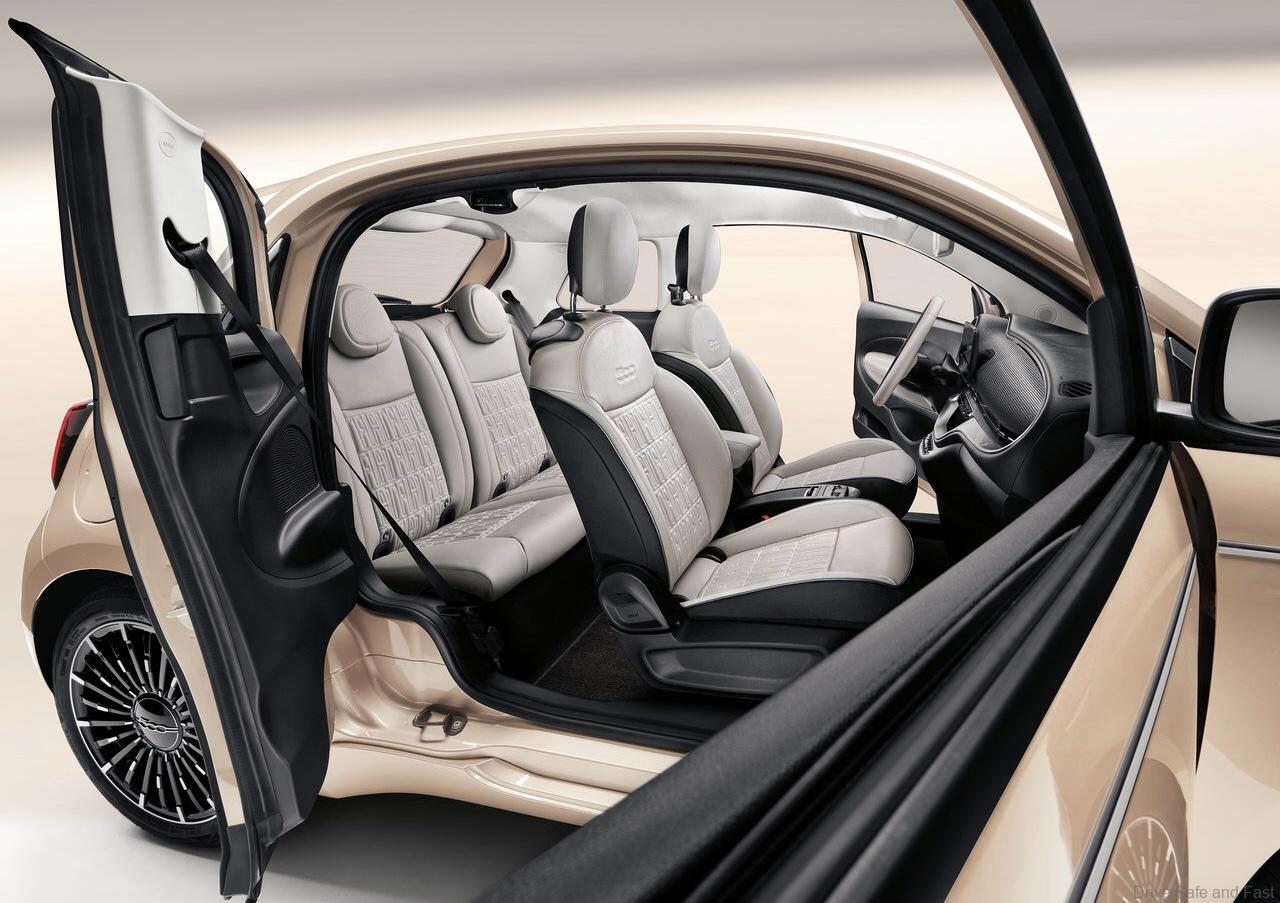 All its interior spaces have been redesigned to give passengers the feeling of a breath of fresh air, as if they were sitting on a ‘romantic bench’. In the continuous interaction between past and future, many references are also made here to the forms used in of the first 500, such as the slender, pure and elegant dashboard, partly down to the minimalist buttons, ordered like a piano keyboard; the now iconic circular instrument panel or the steering wheel, which now has two spokes once again.
