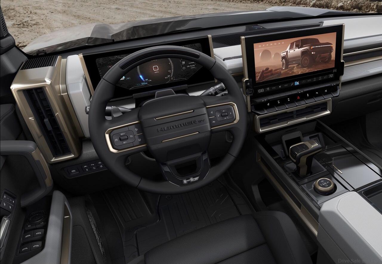 - Drive Mode Control offers driver-selectable modes that tailor performance — including torque splits between the front and rear wheels, and four-wheel steering settings — for different driving conditions. It includes Terrain Mode, which raises the HUMMER EV’s ride height by nearly 2 inches.