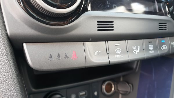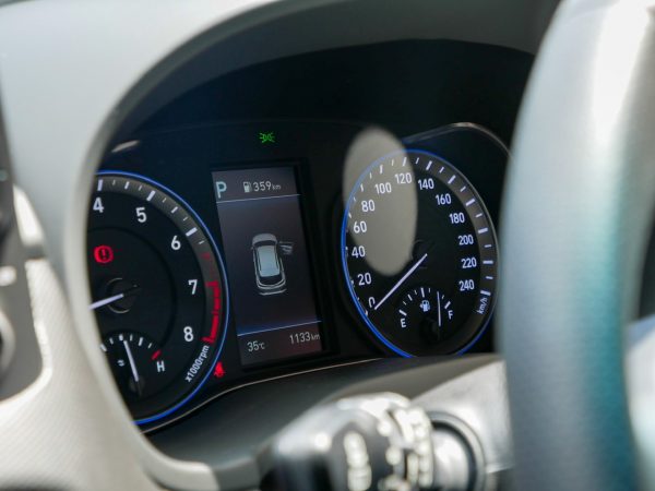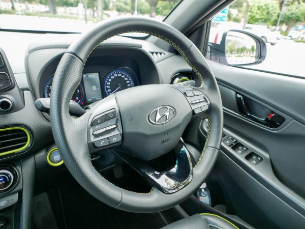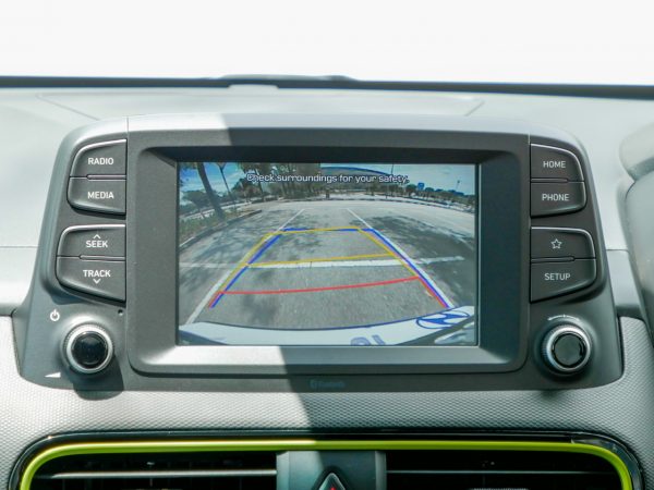 All variants of the Hyundai Kona come with a 4.2” colour display on the instrument cluster and a 7” infotainment unit with Android Auto and Apple Carplay. 6 airbags are also standard across the range. Push-to-start and keyless entry, hill-start assist, downhill braking assist, drive model select, a tyre pressure monitoring system and reverse camera are also standard on the Kona. The base and 2.0L model come with a front passenger seatbelt reminder. These two cars are also configured to have their turn signal stalk on the right side.