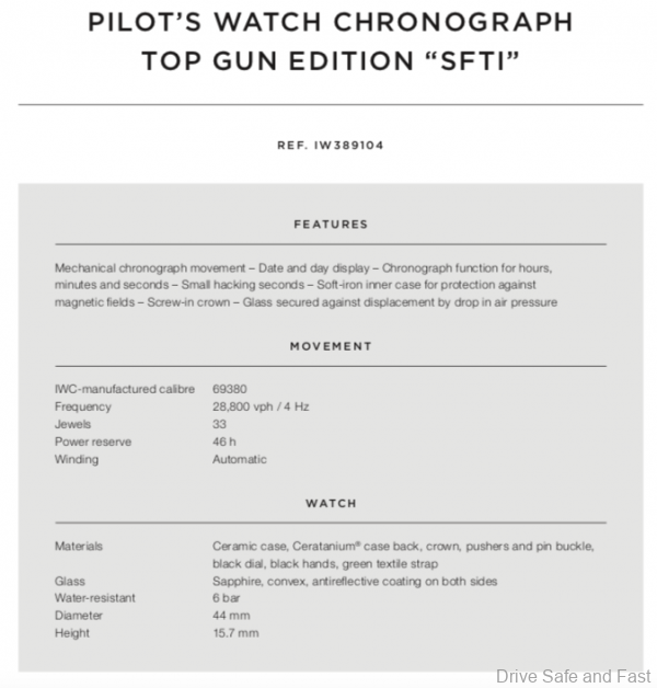 The Pilot’s Watch Chronograph TOP GUN Edition “SFTI”, limited to 1500 pieces, takes inspiration from the acclaimed “Strike Fighter Tactics Instructor”watch. It follows the tradition of IWC’s TOP GUN watches. It is made with extraordinarily robust materials to withstand the extreme strain that pilots experience in the cockpit of supersonic jets like the F/A-18 Super Hornet.