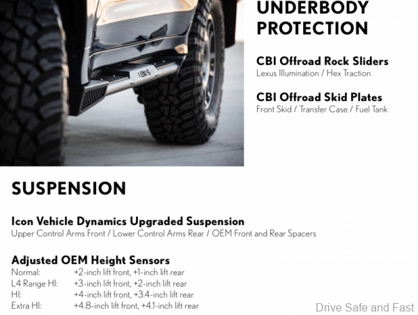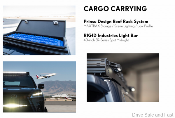 J201’s thoughtfully curated collection of enhancements leverages Lexus’ foundational pillars – Brave Design, Imaginative Technology, Exhilarating Performance, and Omotenashi – to express a focused, yet functional, progressive means of mobility – pavement or not.