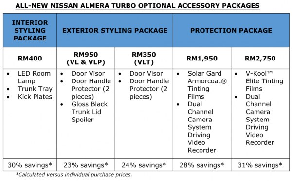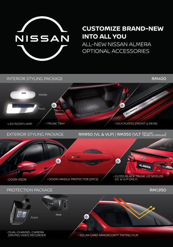 Edaran Tan Chong Motor Sdn. Bhd. today released the Optional Accessory Packages pricing menu that allow customers to personalize their All-New Nissan Almera Turbo.