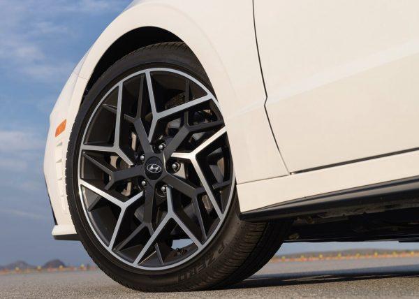 Sonata N Line has a low curb weight at just 3,838 pounds (1,740 kg). Its turbocharged engine and a well-sorted suspension provide comfortable cruising and agile mid-speed cornering. The motor-driven power steering system is rack-mounted and secured at three locations for reduced flex and more direct handling, especially during fun driving. To bring Sonata N Line to a stop engineers added larger front and rear brake calipers and discs.