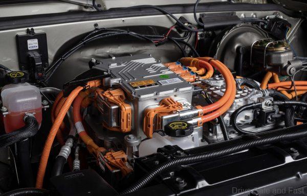 At this event, they’re showing off a 1977 K5 Blazer with its motor replaced with an electric powertrain derived from the Chevrolet Bolt. The Blazer’s 6.5L V8, 3-speed automatic transmission, fuel system and exhaust were all removed. In its place is a Bolt EV electric motor and a 4-speed electronically controlled automatic with 200hp and 360Nm of torque. The Blazer retains its all-wheel drive capabilities.