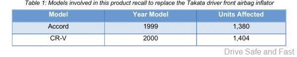 Attention owners of Accords made in the year 1999 and CR-Vs made in the year 2000, your life could be at stake. Honda Malaysia have issued a product recall on 2,784 units of those vehicles. This product recall concerns the replacement of the driver front airbag inflator. Here’s a breakdown of the units affected: