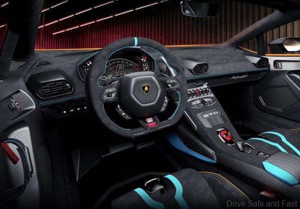 New Human Machine Interface (HMI) graphics feature on the Huracán’s touch screen, which manages the car’s functions including drive mode indicator, the LDVI system, tire pressures and brake temperatures. A fully connected telemetry system allows pilots driving their Huracán STO on racetracks to monitor and record their performance and to analyze the data via the Lamborghini UNICA app.