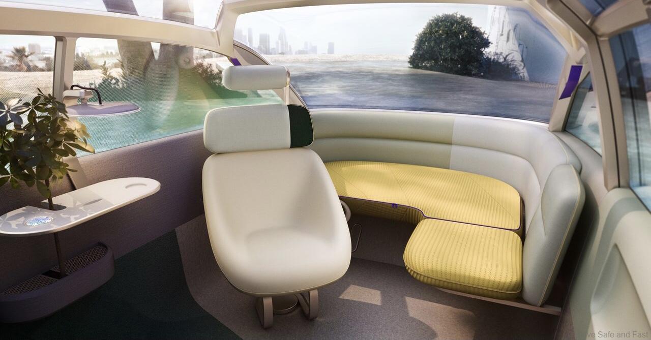 The interior of the MINI Vision Urbanaut provides the ideal environment in which to go on a journey, but is also the aim of the journey. Having arrived at the chosen destination, it can transform into a living room in just a few simple steps. Occupants enter the innovative cabin through a large sliding door in the side of the car. The cutting-edge slide and swivel mechanism is the ideal design for urban driving conditions where space is at a premium. There are no other doors on the driver’s side or front passenger side.
