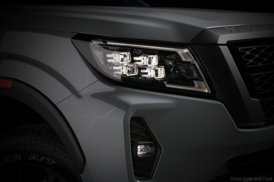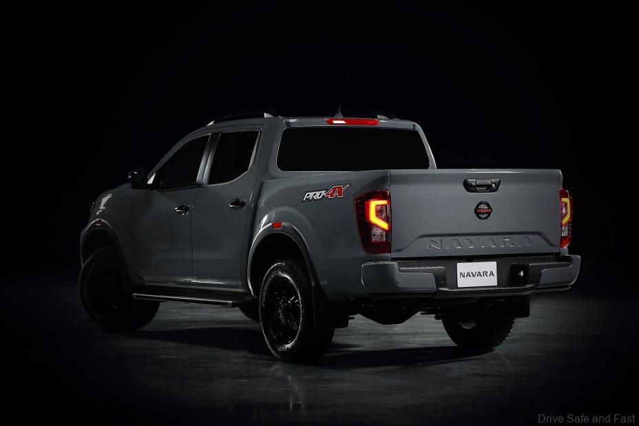 For the first time for the Navara and Frontier, Nissan will offer the PRO-4X grade, a style package aimed at adventure lovers and travelers craving an escape from their daily routine. The PRO-4X grade comes with its own athletic look, with a black emblem, orange-accented front bumper, black grille, door handles, roof racks and running boards accented by 17-inch black wheels and all-terrain tires.