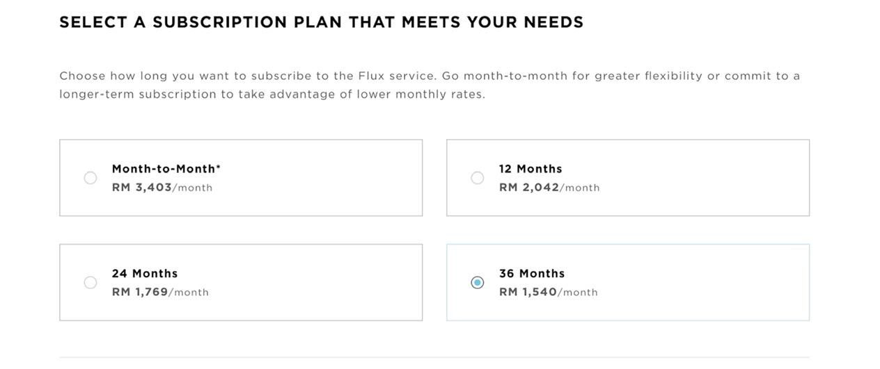 Next, decide on a subscription plan that suits your use best. I chose the shortest tenure of just 1 month and the lite mileage package, but subscriptions get cheaper per month the longer the tenure. A 12, 24 or 36-month subscription would have been better value, but I needed the flexibility of a short package. As for the mileage cap, you don’t have to worry too much about this at the outset as you can easily upgrade this if, let’s say, you’ve got to balik kampung for the holidays.