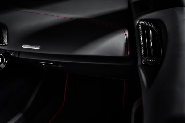 Inside, you’ll find a black full leather interior with Crimson red stitching, racing seats wrapped in Crimson red Nappa leather and Alcantara headliner. The same material is also used to trim the gear lever and steering wheel. In addition, the virtual cockpit surround, air cond vents and centre console are done up in carbon fibre.