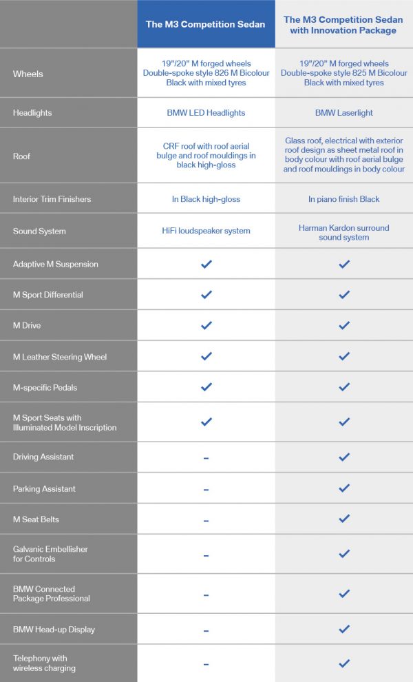 Everyone’s favourite performance sedan, the M3, will be available with the go-faster Competition kit