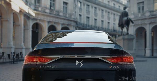 With a length of 4.93 metres, width of 1.85 metres and large 690mm diameter wheels/tyres, DS 9 is more striking than other saloons in its class. It uses a new version of the EMP2 (Efficient Modular Platform 2) architecture with a longer wheelbase not used with a saloon car before, which greatly benefits the rear passenger space. Its design has a sleek silhouette with a steeply raked rear window, fastback style.