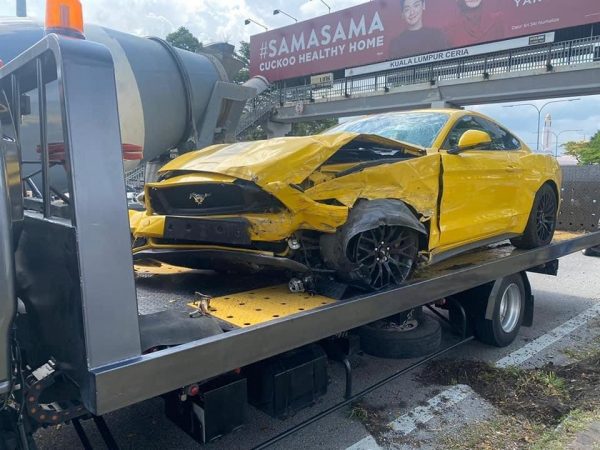 What we have here is yet another example of a Mustang coming in contact with an inanimate object, which in this case, seems to be a highway noise barrier. We’re not sure where and when this unfortunate incident took place but it most likely happened somewhere in the Klang Valley.