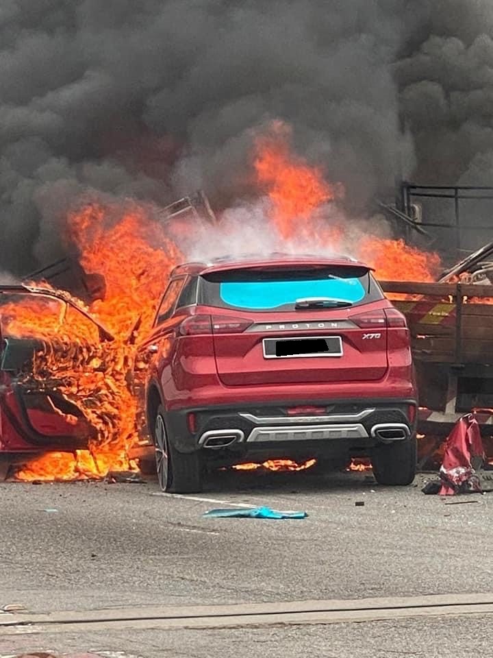 Proton X70 And Lorry Involved In Crash Catch Fire