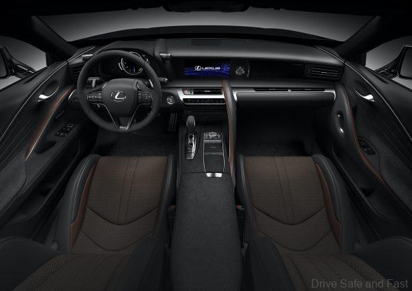 The limited-edition vehicle is offered in one exterior color, the superbly dark Obsidian, which is paired with bold and beautiful 21-inch black forged-alloy wheels that fill out the wheel wells. An eye-catching carbon-fiber reinforced plastic (CFRP) roof is standard, and it proves to be the perfect complement to the carbon-fiber rear air wing spoiler. The LC 500 Inspiration Series also gains some additional enhancements in driving performance thanks to the Torsen limited slip differential.
