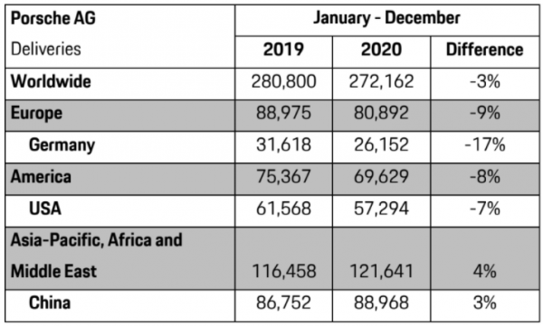 2020 was a difficult year for the auto industry but Porsche seems to have managed to wriggle out of the sticky situation just fine with total sales of 272,162 vehicles, just 3% down compared to 2019.