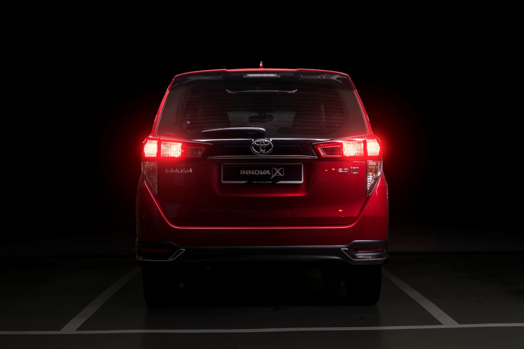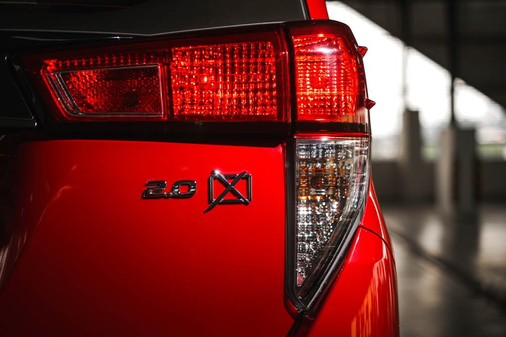 There’s also a new rear door garnish on this variant. The Innova 2.0X has a specially designed roof spoiler, which is said to be more aerodynamic. This model also has its 17″ rims finished in Dark Mica Metallic instead of black. It’s also worth noting that this variant of the Innova has an exclusive body colour called Crimson Spark Red Metallic.