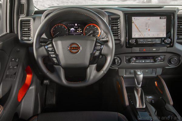 Nissan also retuned Frontier’s hydraulic rack-and-pinion steering gear for 2022 to provide better on-center feel, reducing driver fatigue on long trips. Steering gear ratio has been increased by 16 percent, leading to a faster response with less steering effort.