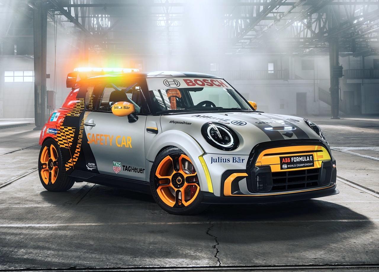The MINI Electric Pacesetter inspired by JCW is the new Safety Car for the ABB FIA Formula E World Championship race series. As such, it connects the brand’s electrified future with the rich racing history of John Cooper Works. The car was created out of the new MINI Cooper SE as part of an unprecedented collaboration between MINI Design, BMW Motorsport, the FIA and the Formula E.