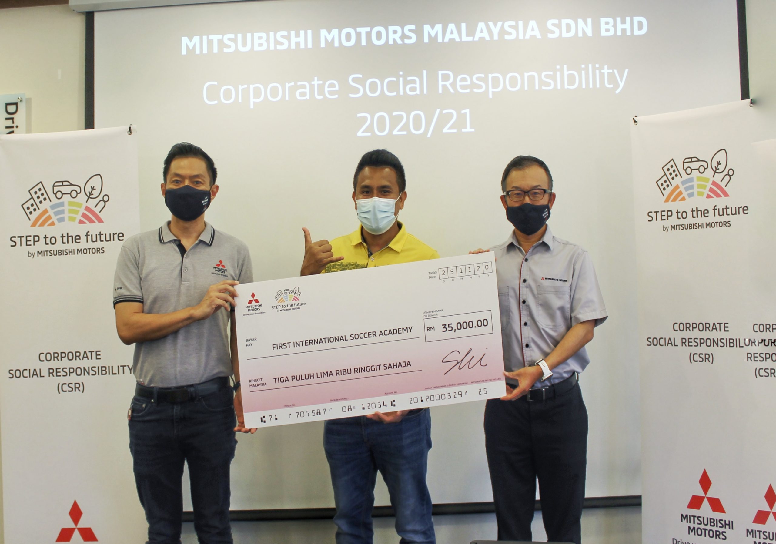 MITSUBISHI MOTORS MALAYSIA (MMM), the official distributor of Mitsubishi Motors vehicles in Malaysia, made a cash donation of RM35,000 to First International Soccer Academy Malaysia (FISA) and donated laptops to Pertubuhan Kebajikan Yesuwin Mahligai Selangor (PKYMS) and the Arthritis Foundation Malaysia (AFM) recently.