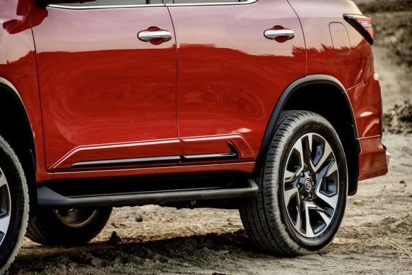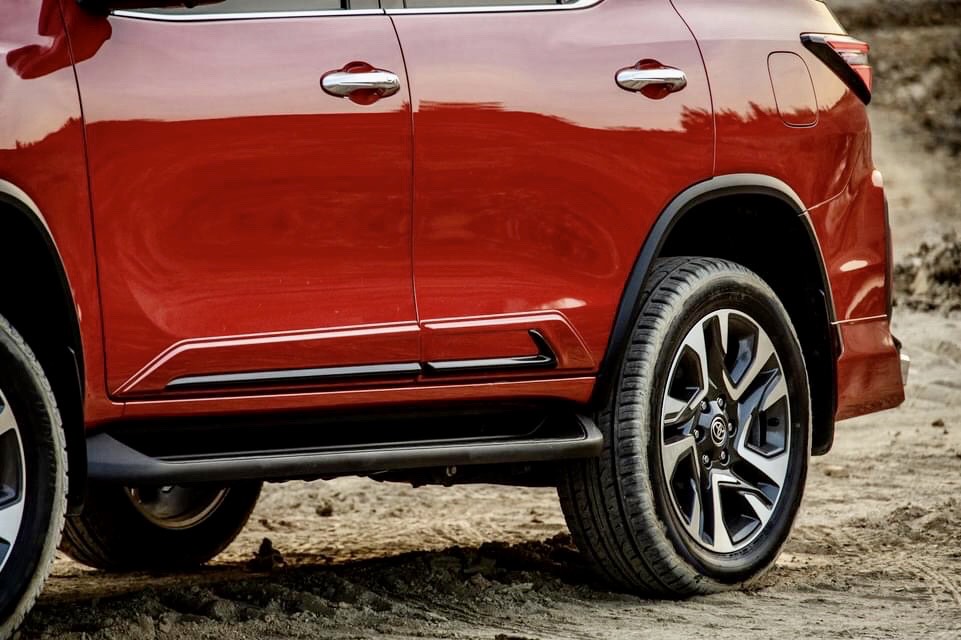 On the sides, the presence of side steps means side skirts are unnecessary but to add visual flair to the side profile of the Fortuner, Tithum has added gloss black garnish on the lower part of the door.