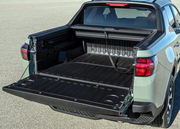 While it doesn’t look quite as dynamic or funky as the original 2015 Santa Cruz concept car, the final product is still a handsome and rugged-looking thing. Because it’s based on the Tucson, it inherits the hidden lighting signature within a ‘cascading grille’ with a parametric jewel design. At the rear, the Santa Cruz sports a unique horizontal “T” lighting signature. Lettering that spells ‘HYUNDAI’ adorns the tailgate handle while “SANTA CRUZ” is embossed on the tailgate itself.