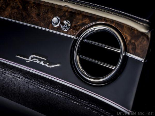 The Continental GT Speed Convertible’s luxurious interior offers unrivalled Grand Touring refinement blended with unique Speed detailing, fully revealed to the world when the roof is lowered. An Alcantara steering wheel and Speed insignia on the passenger fascia are complemented by a unique colour split trim in hide and Alcantara. Customers can further choose from 15 main and 11 secondary hide choices. Diamond in Diamond quilting and Speed embroidered headrests hint at the performance characteristics of the most potent Continental GT Convertible, while Mono Tone colour split with Alcantara/leather is a no cost option. Piano Black veneer is standard in the Speed, with Crown Cut, Dark Stain Burr Walnut and Dark Fiddleback Eucalyptus offered as no cost options. Open pore Dark Stain Burr Walnut veneer, Crown Cut Walnut and Koa are also available. Sports pedals and Speed treadplate plaques are fitted as standard, while customers can choose the optional Dark Tint, Engine Turned Aluminium console, or a leather alternative to the Speed colour split trim and the Speed Colour Specification. A neckwarmer (which is both warmer and quieter than in the previous generation model), is seamlessly integrated into the heated and vented Comfort Seats, optimising efficiency and airflow around the electrically adjustable headrests. The styling highlight of the new neckwarmer is a chrome centre vane that stretches the full width of the duct, echoing Bentley’s famous ‘bullseye’ vents. Combined with a heated steering wheel and heated armrests, these sophisticated comfort features create a luxurious driving experience in all environments.