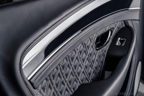 This Continental GT V8 was worked on by Bentley Mulliner, their custom coachbuilding arm. The entire monochrome theme of the car is based around black, silver and white. It can be optioned with either an Onyx (black) or Glacier White exterior paint finish. It comes with the Styling Specification (front splitter, rear diffuser, boot lip spoiler, side sills) in high-gloss black carbon-fibre. A Moonbeam (silver) pinstripe accent is hand-painted on the edge of the carbon fibre pieces. The 22″ Mulliner Driving Specifications wheels are finished in dark metallic Tungsten paint.