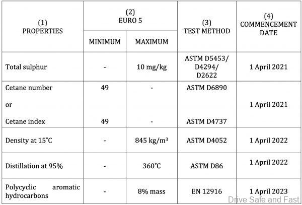 For now, the lower sulphur content and specific cetane number/cetane index are the two measurable qualities that the government will be enforcing for diesel fuel. What this effectively means is that the cheaper Euro 2M diesel fuel may be taken off the market completely! Don’t quote us on that until an official statement is made by the government, but that’s what legislation seems to suggest.