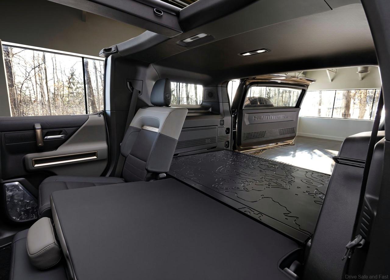 Inside, a similar five-passenger layout from the Pickup remains, allowing for a large and useful rear cargo area. In fact, with the rear seats folded flat, the HUMMER EV SUV offers up to 81.8 cubic feet of cargo space. On top of that, there is an additional storage space hidden under the load floor and another compartment integrated into the side trim.