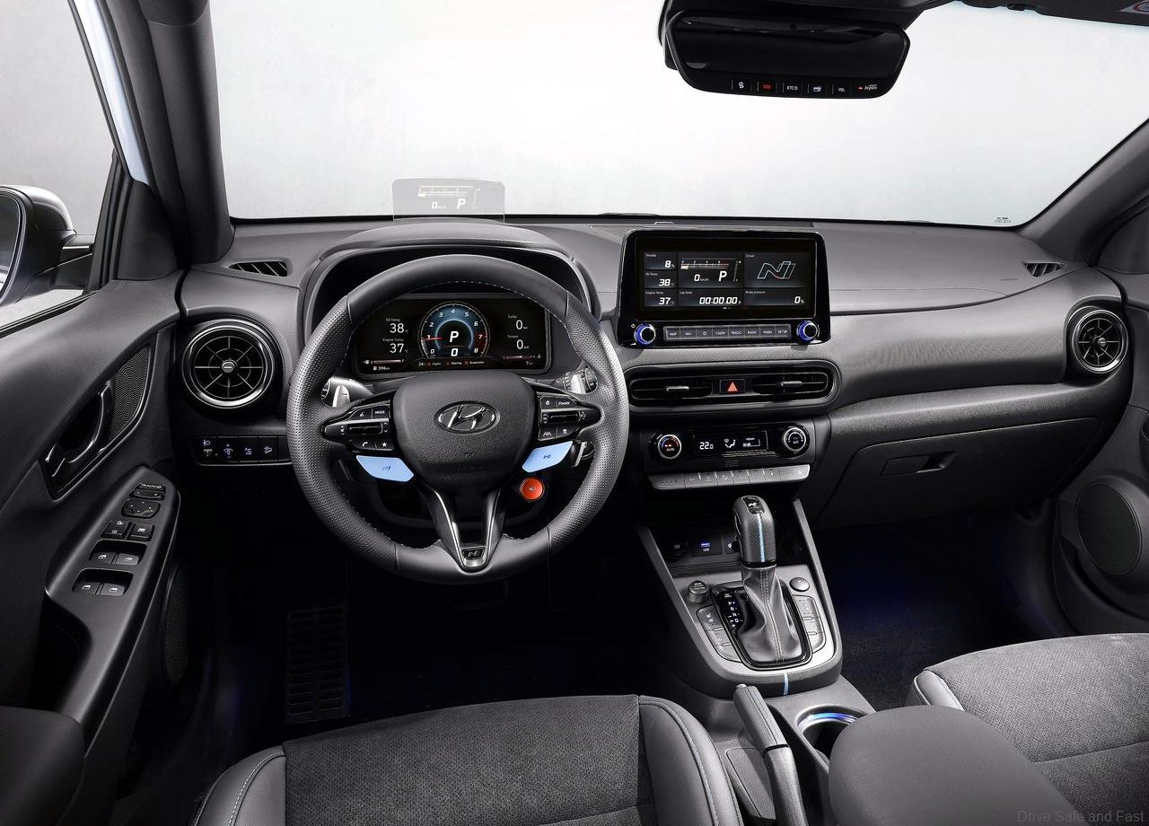 The all-new KONA N additionally comes with a 10.25-inch digital N cluster with a sporty design and a 10.25-inch AVN touchscreen. A Performance Driving Data System monitors and improves racetrack driving skills. The feature saves and displays driving data, such as PS, torque, and turbo boost, during racetrack driving via AVN touchscreen. The system also comes with a lap and acceleration timer. When driving in Sport or N mode, the N graphics will also be shown at HUD.