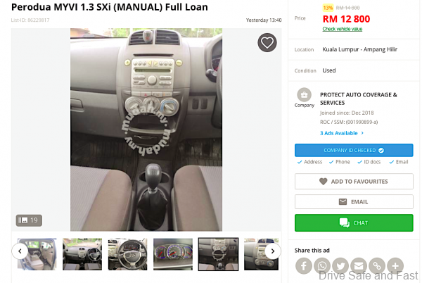So, here is our advice. Look for a used Perodua Myvi. Best if you can drive a manual 5-speed, it is cheaper to buy and maintain. Or else, we can offer some automatic suggestions. Scanning www.mudah.my we found hundreds of Myvi’s for sale, but it was this 1.3SXi (Manual) that caught our attention first. Priced at RM12,800 it is a good first car to start with.