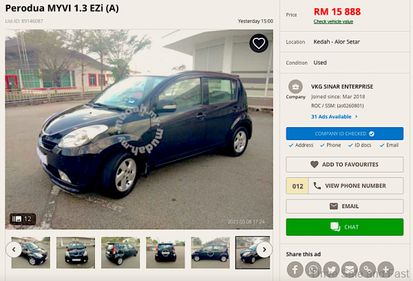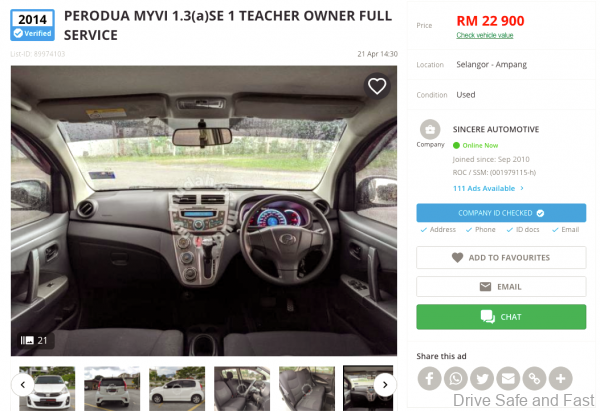 So, here is our advice. Look for a used Perodua Myvi. Best if you can drive a manual 5-speed, it is cheaper to buy and maintain. Or else, we can offer some automatic suggestions. Scanning www.mudah.my we found hundreds of Myvi’s for sale, but it was this 1.3SXi (Manual) that caught our attention first. Priced at RM12,800 it is a good first car to start with.