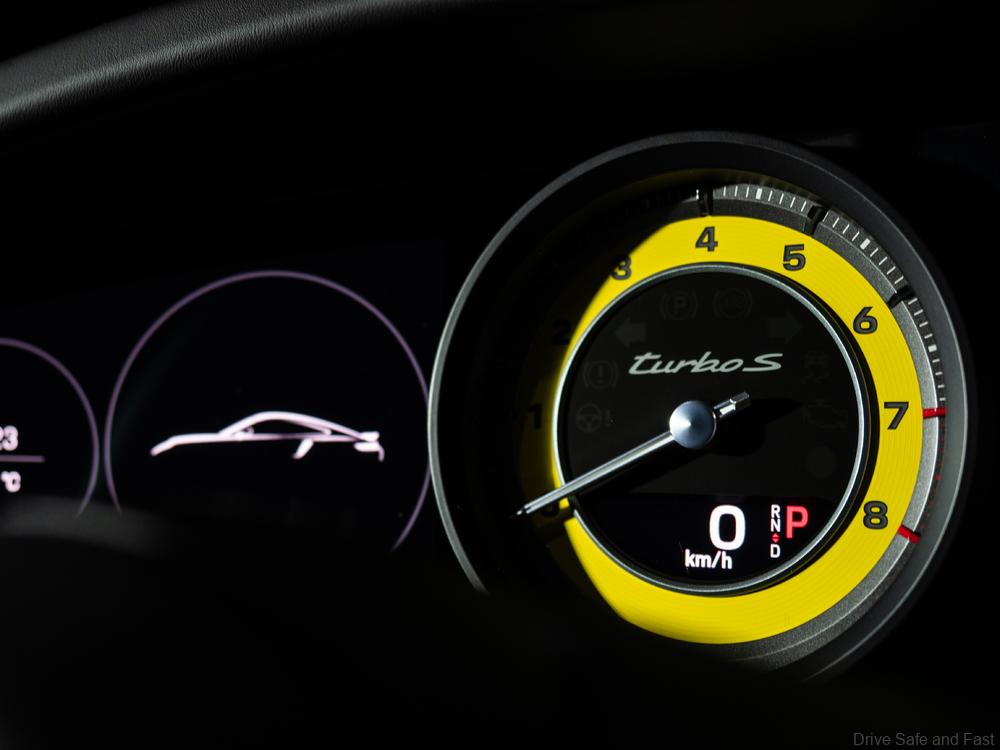 This is the first 911 Turbo S to feature mixed tyre sizes. The front has 255/35 R20 tyres while the rear features 315/30 R21. Standard equipment in the Porsche 911 Turbo S includes a full leather interior, carbon trim, Light Silver accents, 18-way adjustable sports seats, 10.9″ PCM display, GT sports steering wheel, Bose Surround Sound system, Sport Chrono with integration to the new Porsche Track Precision app. The 911 Turbo S also comes with Porsche Active Suspension Management sports chassis (10mm lower), sports exhaust system with adjustable flaps and rectangular tailpipes in high-gloss black, as well as LED matrix headlights with dark inserts.