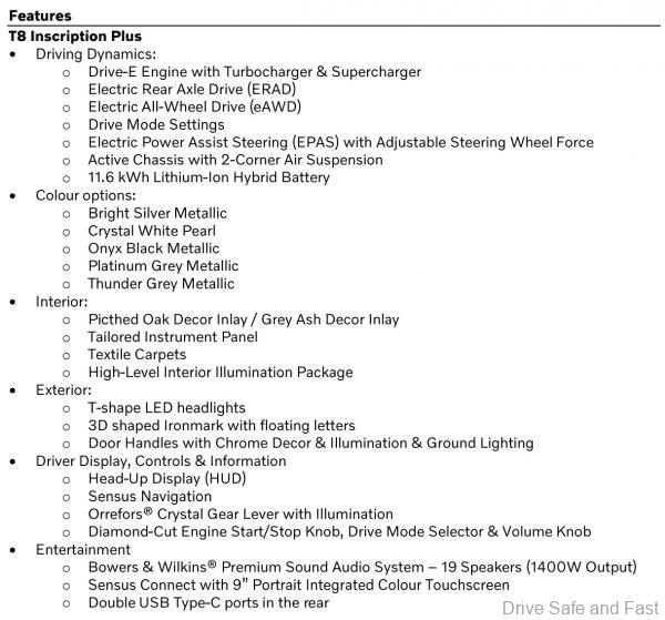 - Volvo S90 Recharge T8 Inscription Plus – RM358,888 (WITH SST), RM339,315 (WITHOUT SST)