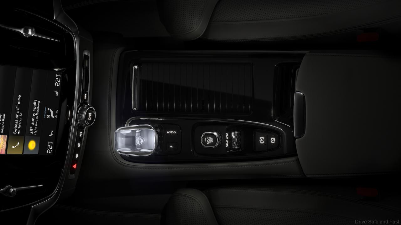 design contours of the S90 Recharge T8 and sits just above the dashboard.