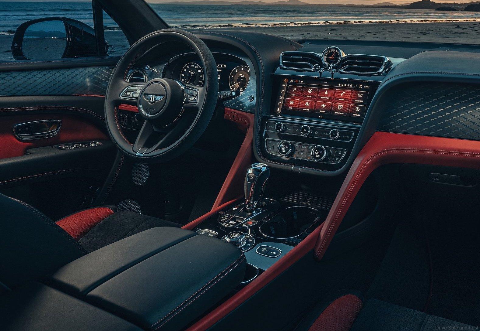 The ‘S’ colour split introduces Alcantara® to the cabin of the V8-powered Bentayga, across the seat cushions and back rest center panels, gear lever, steering wheel, upper trim and headlining creating a performance-focused yet luxurious interior.