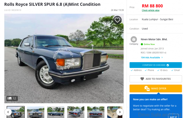 Asking price for a Silver Spur should be tempting for someone who just got funding for their tech idea.