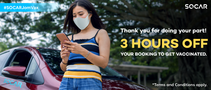 In the wake of the enthusiastic response to the AstraZeneca vaccine registration beginning last Sunday (2 May), Malaysians who have successfully secured their vaccination appointments are now making plans to take time off from work and arranging transportation to the allocated vaccination centres. For those considering driving there, SOCAR is offering FREE 3 Hours off their SOCAR booking for travelling to and from the vaccination centre.