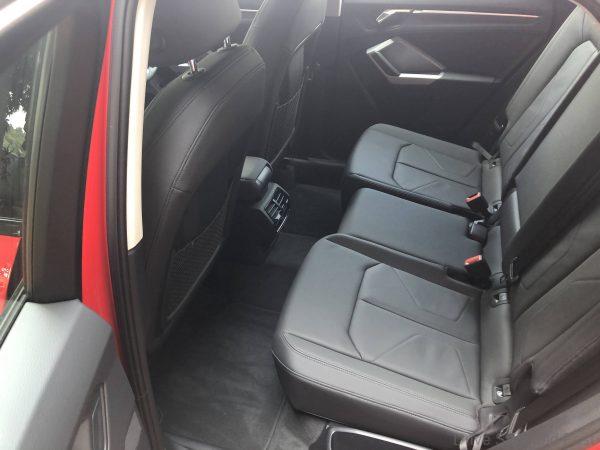 The Audi Q3 Sportback is 4.50 m (14.8 ft) long, 1.84 m (6.0 ft) wide and 1.56 m (5.1 ft) high; its wheelbase measures 2.68 m (8.8 ft). This results in a large and highly variable interior. The rear seats offer space for three people. They can be moved 130 mm (5.1 in) longitudinally as standard; their backrests are divided into three sections, and their inclination can be adjusted in seven stages. The volume of the luggage compartment ranges from 530 l (18.7 cu ft) to 1,400 l (49.4 cu ft).