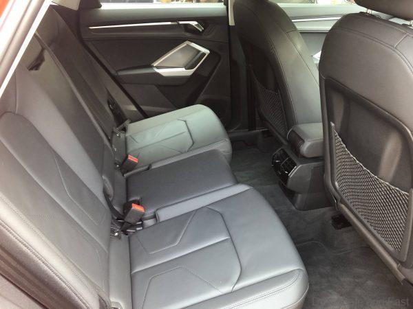 The Audi Q3 Sportback is 4.50 m (14.8 ft) long, 1.84 m (6.0 ft) wide and 1.56 m (5.1 ft) high; its wheelbase measures 2.68 m (8.8 ft). This results in a large and highly variable interior. The rear seats offer space for three people. They can be moved 130 mm (5.1 in) longitudinally as standard; their backrests are divided into three sections, and their inclination can be adjusted in seven stages. The volume of the luggage compartment ranges from 530 l (18.7 cu ft) to 1,400 l (49.4 cu ft).