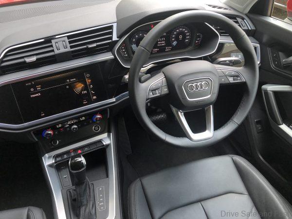 In the city, this crossover behaves predictably like a hot hatch through corners and the average driver will find themselves slowly being a hero around corners as its high tail stays tucked in at speeds that will leave many others scouring for traction, all this thanks also to the Quattro drive system. The drive comes instantly and with great traction, pulling this Q3 from the apex with neutrality not many drivers can really handle. And unlike it immediate rival (the BMW X2), the rewards seem to come entirely without compromise. The well damped steering wheel is a joy to hold and abuse around corners.