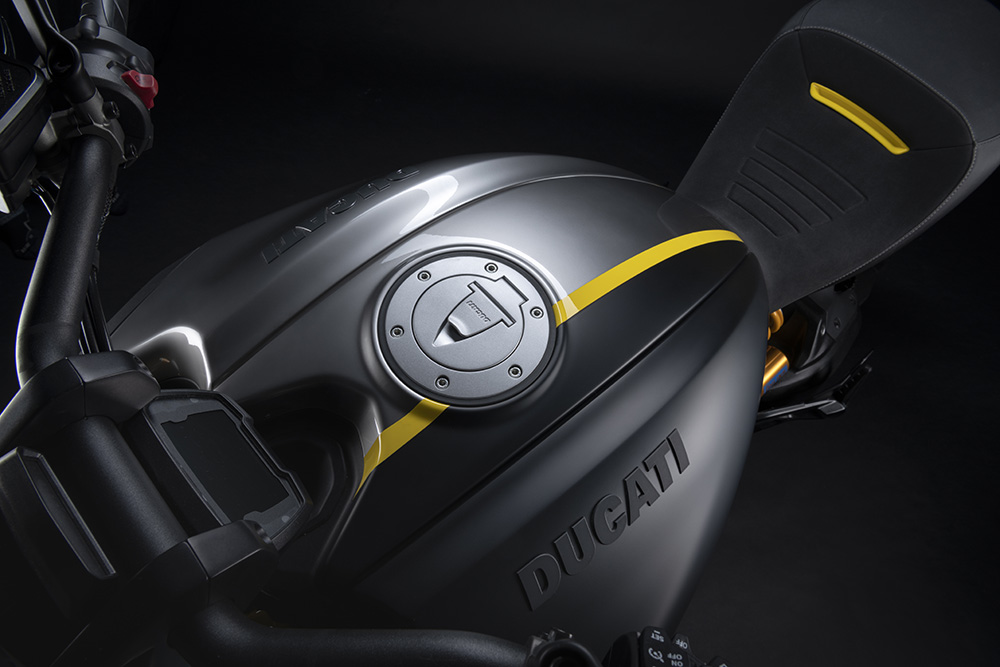 Presented as a nod the Diavel “Materico” concept shown at the 2019 Milan Design Week, the Black and Steel edition boasts a bold combination of gloss grey and matte black, with yellow accents on the frame, lower part of the tail and some other parts.