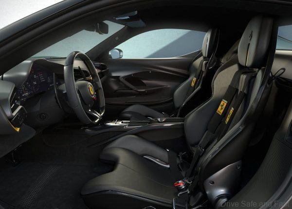 From a chassis perspective, the wheelbase is 50mm shorter than previous Ferrari mid-rear-engined berlinettas to the benefit of the car’s dynamic agility. Other solutions that enhance the car’s handling and performance include the brake-by-wire system, the ‘Aero’ brake callipers from the SF90, electric power steering, the rear active aero device and SCM-Frs magnetorheological dampers.