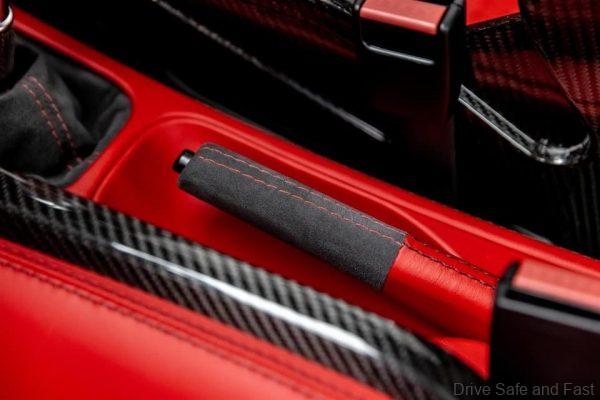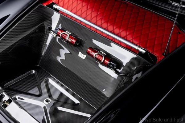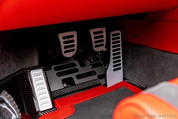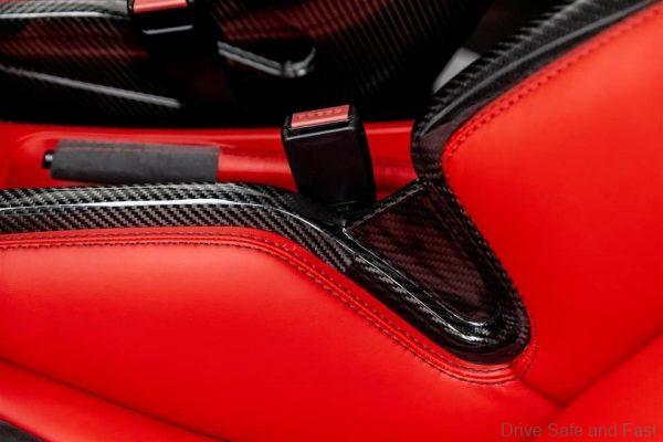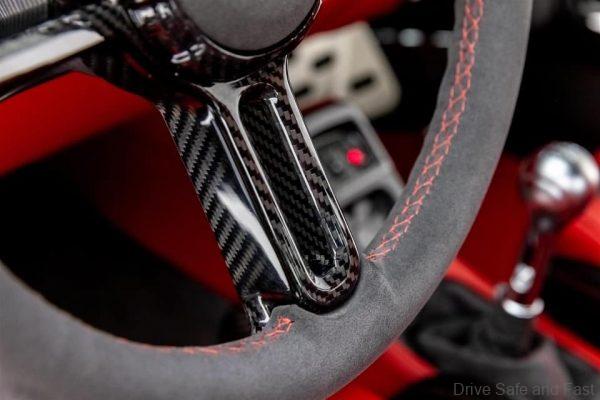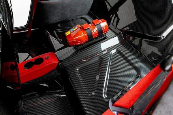 Inside, Rogan has gone for a blend of black and red for his interior. exposed carbon fibre is seen on the bucket seats, floor panel and more. There’s also a lot of Alcantara and leather inside.